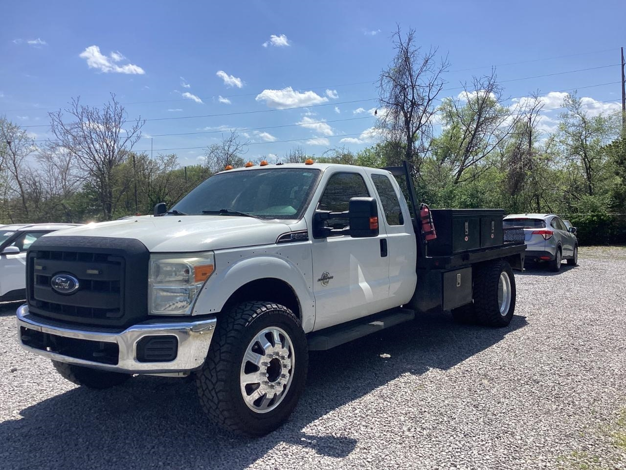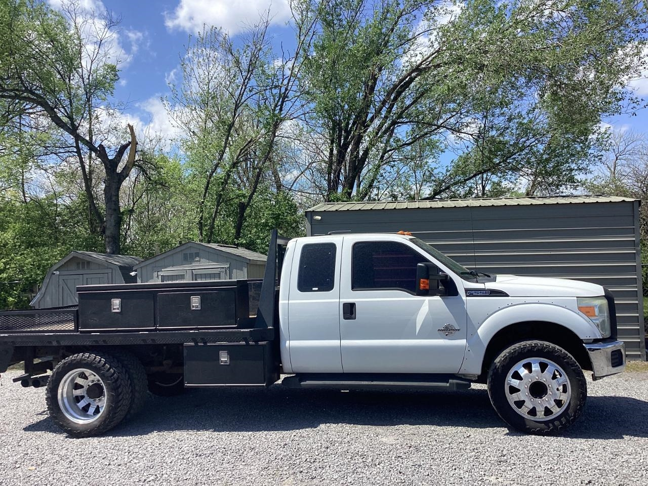 We just took in this 2014 Ford F-550 Super Duty XL Extended Cab on trade. 6.7 Powerstroke diesel, dually, flatbed with toolboxes. It’s set up for hauling, towing, and carrying what you need. Flatbed gives you room to load, and the toolboxes are there to keep your gear with you. It hasn’t been reconditioned. We’re offering it as-is due to mileage (323K). If you need a work truck, come take a look!